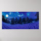 Stjärnnatten med fullt måne i skogen poster