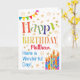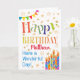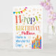 Ett färgglatt, det text baserade födelsedagkortet för att dig ska skräddarsy med de mottagarens ljusa randiga födelsedagtårtastearinljusen för namn, med Polka pricker Bunting, och strilat med guld-verkställa stjärnor. De mönstrade textnågot att säga, "grattis på födelsedagen" och där är "har också en underbar dag!", i blåttbokstäver (guldet verkställer stjärnor och skisserar OBS ska är som sett och att inte skrivas ut i metalliskt bläck.),