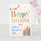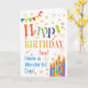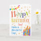Ett färgstarkt, textbaserat födelsedagskort för en son, med Polka Dot Bunting, ljusa, stripade tårtljus och sprinklingade med guld-effektstjärnor. I den mönstrade texten står det "Grattis på födelsedagen" och det står också "Ha en underbar dag!" i blått bokstäver (NB: guld-effektens stjärnor och konturer kommer att se ut som de ser och inte tryckas i metalliska bläck).
