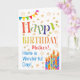 Ett färgstarkt, textbaserat födelsedagskort för Mor, med Polka Dot Bunting, ljusa, stripade tårtljus och sprinklade med guld-effektstjärnor. I den mönstrade texten står det "Grattis på födelsedagen" och det står också "Ha en underbar dag!" i blått bokstäver (NB: guld-effektens stjärnor och konturer kommer att se ut som de ser och inte tryckas i metalliska bläck).