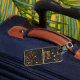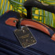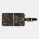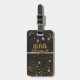 Looken för roligtsvartläder med elegantt guld- monogrammed namn reser bagagemärkren. Det Monogrammed namn beklär på i den guld- tonen som märker över ett guld- metalliskt lookband. Stilsortsstil och färger kan ändras. Bakgrund för struktur för looken för lyxsvartläder med guld- glitterkonfettiar för fauxen pricker och guld- glitterstjärnor spridda över det bästa och nedersta. Baksida har samma utskrivaven faux som guld- konfettiglitter pricker, och stjärnamönster med svart läder verkställer bakgrund. DIY-textmall som tillfogar namn och telefonnummer eller annan information om kontakt på bak. Notera: Bilder skrivs ut. Inte faktiskt glitter, konfettiar eller läder. Svart och guld- bagagemärkre för snyggt.