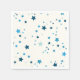 Stjärnor i olika storlekar i många blå nyanser på vit bakgrund gör roligt blöjor. Löjorna kan användas för vuxen eller party, pojkar eller flickor eller även för Independence day party. Denna formgivning säljs också på pappra underlägg och på pappra tallrikar.