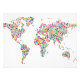 Karta i världen tillverkad av överlappande, färglösa, halvgenomskinliga stjärnor, på vit bakgrund.