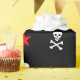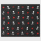Roligt papper med röda stjärnor, döskallar och korsben.