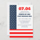 4:e juli-partiets inbjudan med röd vit och blå stars och stripes