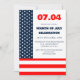 4:e juli-partiets inbjudan med röd vit och blå stars och stripes