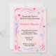 Rosa bakgrund med stjärna och virvlar kant. Färgglad födelsedagsfest inbjudan. Perfekt inbjudan för barn och vuxna. Anpassa med dina festdetaljer.