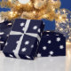 En papper omslagningsrulle med en spridning av 6-sidiga suddiga stjärnor på mörk blått bakgrund. För stjärna älskare. Underbar som julklapp!