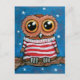 En uggla med stora ögon iklädd en röd och vit randig skjorta är omgiven av en mörkblå stjärnhimmel. Ett roligt och fantasifullt vykort med patriotisk känsla! Skapat från en originalmålning. Copyright © 2010 Lisa Marie Robinson Alla rättigheter förbehållna. Det är inte tillåtet att använda eller kopiera denna, eller någon av våra bilder, utan skriftligt tillstånd.