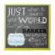 Ett inspirerande hoppfullt budskap med olika typsnitt på en kritbräda som ser bakgrunden: Just när det verkar som om världen inte kan få någon mörkare syn på himlen och se stjärnorna visas!