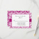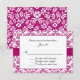 Elegant blomsterbröllopsinbjudan, med ett violett rosa på vitt liljefloralt damaskmönster, grafik av ett violett rosa sidenband löper under ett rosa infattat vitt textområde. Anpassad svart text redo att anpassas för din speciella dag. Matchande produkter finns tillgängliga.