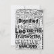 Fira födelsedagar, milstolpar eller andliga affirmationer med det här Lejon Zodiak-ordmolnet i gratulationskort. Med en djärv och stärkande design fylld med ord som "Självsäker", "Strålande", "Lidelsefull" och "Trogen", utstrålar det här platta kortet den höga energin hos Lejonet.