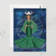 Zodiak Oxen Gudinnan Mode Illustration i en rymd himmelsk bakgrund vykort. Teckningen visar en kvinna i en grön tvådelad klänning som representerar jordens tecken. Det inkluderar också Oxens härskande planet Venus. Söt Oxe-design för kvinnor födda under Oxens säsong. Bra present till födelsedagar eller jul. Perfekt för födelsedagar i april och maj. Illustrationen av Oxens gudinna kommer att bli en bra present till din vän, kollega eller dotter.