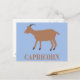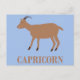 Det här fantastiska vykortet har en digital konstbild av en brun get med svarta horn och mörkbruna hovar. Geten representerar stjärntecknet Stenbocken för människor födda mellan 22 december och 19 januari. Det finns text under geten som säger Stenbocken.