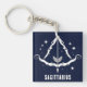 Symmetrisk konstnärlig avbildning av en båge och pil omgiven av stjärnor, med intrikata dekorativa element mot en djupblå bakgrund, som frammanar teman om himmelsnavigering, symbolism och konstnärlig symmetri.