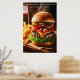 Upplev en stjärnspridd burgerkänsla med denna dechiffrerbara behandling. En köttfärs, grillad till saftig finfördelning, fylls med smält cheddarost, krispy bacon, färsk sallat, vibrerande tomat och tangylimpor. Alla tuggade i ett rostat sesamfrö bun och serverade tillsammans en generös del av gyllene, krispys frites. En liten amerikansk flagga lägger stolt fingret på tallriken, skapar detta en patriotisk och utsökt glädje.