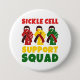 Snyggt SICKLE CELL SUPPORT SQUAD-knapp för manar, kvinnor och barn som vill öka medvetenheten om sicklecellen och dess utbredning bland svarta. Det tar ställe i september att känna igen sig i sickle Cell Awareness Day (Sickle Cell Awareness Day). Det tar ställe den 19 juni att sammanfalla med den 19 juni. Sickelcell är ett genetiskt villkor som påverkar kroppens röda blodkroppar. Människor från villkor kan ofta drabbas av smärtsamma episoder. Visa ditt stöd för familj och vänner som har denna villkor och gör vad du kan för att öka medvetenheten genom att bära denna sickle cell-knapp. Design visar röd-, gult- och grönt-fister som klämmer mörk röd rosett band. Fetstipografi i rött, gult och grönt. Andra variationer i denna design finns tillgängliga från Berean-design.