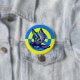 Knappen Support for Ukraina. Det ukrainska flagga färg, med en fredssymbol och duva. Doven är en fullt av pulserande blues, lila och pinkar, som vänder sig mot de ljusa blocken av gult och blått.