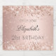En vin-etikett för en giftig och glamorös 21:a (eller någon ålder) födelsedagsfest. En övertoningsbakgrund för faux ro guld med glitter damm från ro guld. Anpassa och lägg till ett datum, namn och 21 år. Namn är skrivet med ett elegant-handskript i stil.