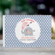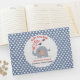 Babyduschgäst bok med vackra barn med alfabetelefant i kombination med blå och vit prickprickar mönster, Personlig fält som kan redigeras eller rensas om det inte behövs