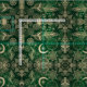 Trendig, magiska guld-drömamcatcher mandala-blommönstret, med en samling stamfjädrar, mandala blommor, geometriska blommor, måne, sol och stjärnorna, cirklar, punkter, fyrkanter, trianglar, chevron zigzag, geometriska former, en mandala med en skyddande öga, som är gjord med gult guld och silver-punkter som skuggar glitter sparkar mystisk bild, över en skogsbild, smaragdbild, gröntens övertoningsbakgrund med stjärnglöd. Det här trendiget, mystiskt, stambaserat, modernt, bohemskt girodesignat, är perfekt för vardaglig bära, hemdekor, firande och speciella dagars temadekorationer.