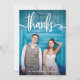 Detta trendig- och snyggtbröllop tackar dig att card särdrag som din egna fullt blöder bröllopfotoet på bekläda, med nyckfull vittypografi och utrymme för ditt namn. Baksidaen presenterar ord "tackar dig" i den samma typografin, men i svart, med rum för ditt egna personligt notera och ett annat foto.