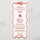 Lägg till en söt och snyggt vid evenemanget bord med den här menydesignen "Hon är Cherry on Top". Med vismatiskt rödskript, ett handritat vågigt gräns och en skönhetsbåge överst, kompletteras layouten med ett sunt par körsbär för en lekfull, återinspirerad känsla. Den rödvita designen är ren, öga-fångstande och perfekt lämpad för möhippor, brunnar eller matade middagar. Helt anpassade med dina menyalternativ och händelser är det en roligt och ett samordnat sätt att koppla ihop ditt körsbärstemmade firande.
