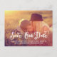 Rustiskt foto Spara vykortet för datum med fotot på framsidan och baksidan. Elke Clarke© Whimsical, trendig typography white script overlay design sparar datummeddelanden för förlovning som du kan anpassa. Om du vill ha mer stil går du till vår butik på www.zazzle.com/epclarke.
