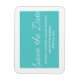 Stollig Spara datum magneter i turkos och vitt med ett enkelt skript av roligt och med typografi. Det här trendiget spara datum magneter är enkelt att anpassa med dina uppgifter om bröllop. Om du vill ha fler anpassningsalternativ klickar du på knappen Anpassa.