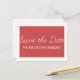 Stollig Spara datum meddelande i rött och vitt med ett enkelt skript i roligt som är typiskt för manuset. Med det här trendiget kan du enkelt spara vykortet för datum och anpassa det med din bröllop-information. Om du vill ha fler anpassningsalternativ klickar du på knappen Anpassa.