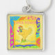 Stollig Vin en liten Chick Power Gult Fyrkantig Silverfärgad Nyckelring