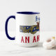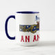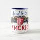 Sätt din patriotism var din mun är med detta gorgeously designade 15 uns. den keramiska kaffemuggen som presenterar ett utsmyckat baner och, skyddar med guld- röda och vitrandar för löv, och vit på blåttstjärnor som skjutas in mellan 2na, fodrar förser med text: "Stolt att vara en amerikan!". Captions kan personifieras på ingen extra kostar. Den inre muggen är kunglig blått (inga fläckar!) med att matcha handtaget.