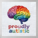 Färgfulla broderade bilder av en regnbåge med den sydda frasen "stolt autistisk". Den handgjorda designen i stil firar autism, pride, neurologisk mångfald, ADHD-medvetenhet och självacceptans, samtidigt som den främjar delaktighet och egenmakt på ett dynamiskt och upplyftande sätt.
