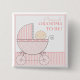 Pricker söta tittar för en flicka ut ur henne förtjusande rosa randigt & polkaen buggyen på denna klämmer fast gjort speciellt för den stolt nya mormodern!