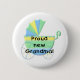 En barnvagn i blått, grönt, och gult och text, som läser "stolt ny mormor" på bebismeddelande, knäppas.
