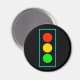 Fet grafisk bild av trafikljuset, i rött, gult och grönt, med ljusblå gräns, på svart bakgrund.