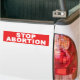 Fet röd bakgrund och vit text läser Stoppa abort.