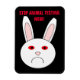 Den här fantastisk-magneten har en vit kanins ledsen ansikte. Den här kaninen har en stor frossa på ansikte eftersom det är en labbkanin som har testat kosmetika på den. Ögats vita är röda och svullna. Utformningen har skapats för att uppmärksamma det onödiga lidande som testningen av kosmetika på djur orsakar.