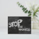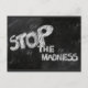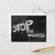 I det här vykortet står det "Stoppa de galenheta" på det.