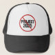 Stoppa projekt 2025 från att förverkligas genom att rösta emot Trump i valet 2024. Rösta för varje demokratisk presidentkandidat till behålla republikaner från att attackera vår demokrati i Amerika. Anti Project 2025-hatt med röd strejka genom.
