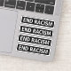 Stickmärken med vit text "stoppa rasism" på svart bakgrund. Fyra klistermärken