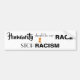 Detta antirasistiska klistermärke som bidrar till att främja jämlikhet har ett informationsband för orangen (som stöder avskaffandet av rasdiskriminering) och ett ordspråk som lyder: Humanitet bör vara vår tävling STOP RACISM.