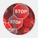 Röd texturerad bakgrundsbild med ett montage av stoppskyltar på vägen. Bild finns tillgänglig på olika presenter och produkter.