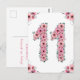 Vacker elfte födelsedag stor siffra elva dekorerad med vackra akvarell rosa blommor och grönt lövverk. Stor 11-årspresent till din flicka för ett unikt och mycket speciellt vykort.