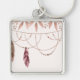 Stor (2 tum) Boho Patterned Premium Square Fyrkantig Silverfärgad Nyckelring
