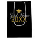 En modern svart och guld presentpåse för den som tagit examen. En rolig presentpåse för examen som du kan anpassa med ett namn. Den kan användas för alla som tagit examen - gymnasiet, universitet, forskarutbildning, medicinska studier eller yrkeshögskola.
