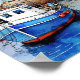 Vackra färgbilder i vatten av båtar i en engelsk kusthamn, perfekt konst att komplimentera alla hem.