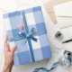 En klassisk kornblomblått och vit buffel pläderade mönster. Anpassadets födelsedagsförpackning är papper. Den vita gingham-grafiken är en sömlös bricka mönster. Om du överför den här designen till en annan gåva kan du använda alternativet Ruta och ändra den blå bakgrunden färg.