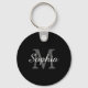 Stor Dk Grått Monogram, vitt skript Namn, svart Nyckelring