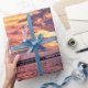 Stor färgstark solnedgång över vattenstrand,vacker presentpapper